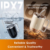 - نمایشگر LED رنگی: با تغییر رنگ نور LED، دمای نوشیدنی را بهصورت بصری نمایش میدهد؛ ویژگیای جذاب و ایمن برای جلوگیری از سوختن دست.