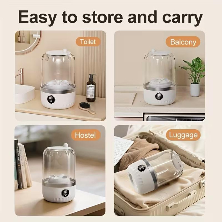 ماشین لباسشویی مینی قابل حمل، انتخابی هوشمندانه برای کسانی است که به دنبال شستشوی سریع و بهداشتی لباسهای کوچک و ظریف مثل جوراب، لباس زیر، لباس کودک و پارچههای حساس هستند. این دستگاه با طراحی مدرن و ابعاد جمعوجور، به راحتی در هر خانه، خوابگاه یا حتی سفر جای میگیرد.