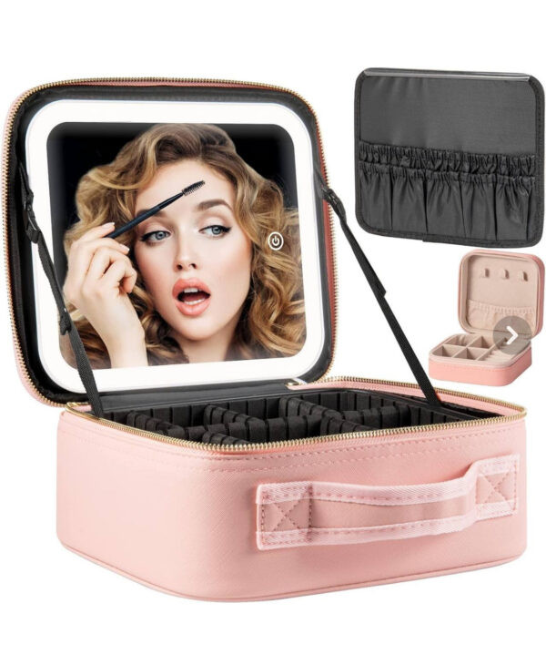 کیف لوازم آرایشی با آینه چراغ دار لمسی شارژی قابل حمل