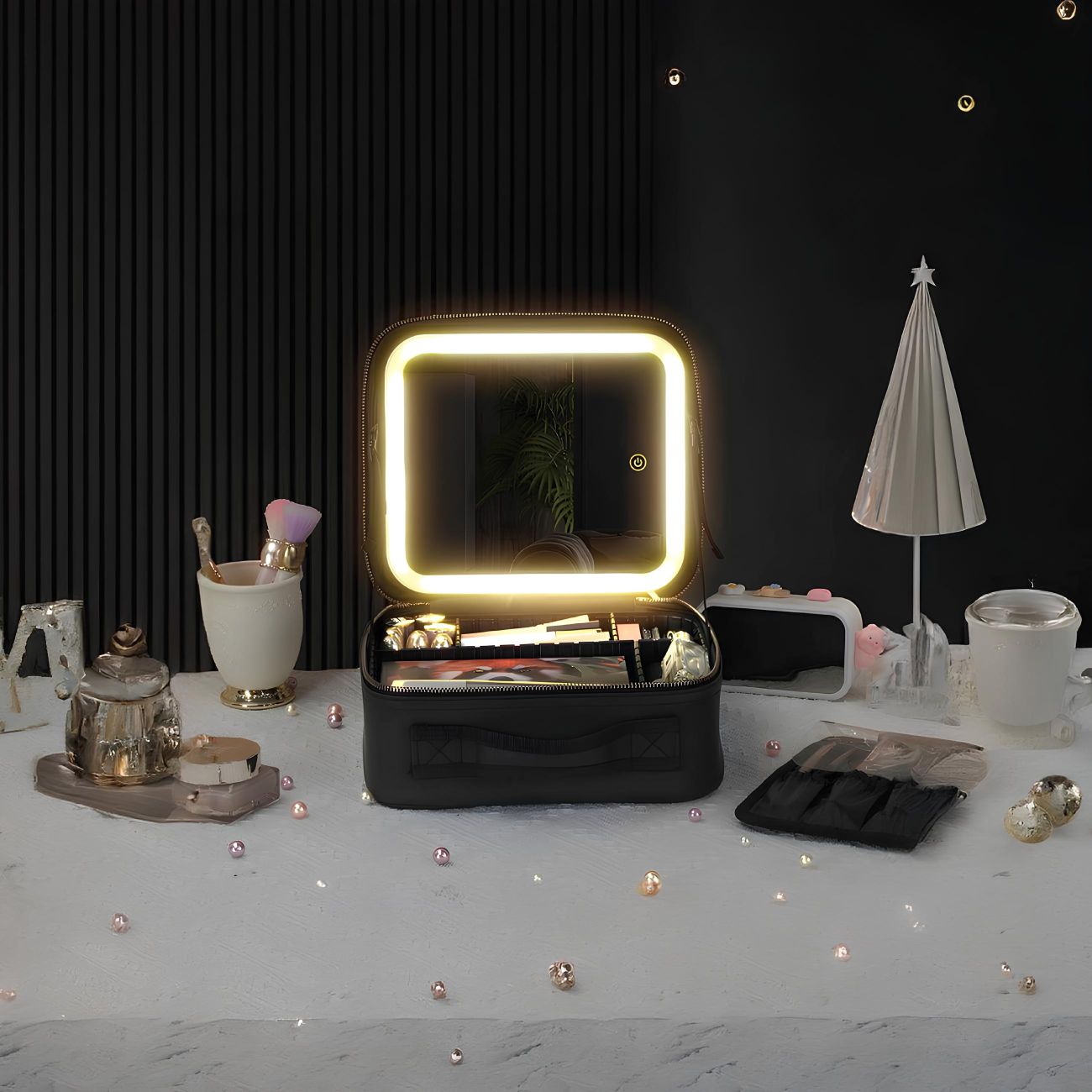 کیف لوازم آرایشی با آینه چراغ دار لمسی شارژی قابل حمل