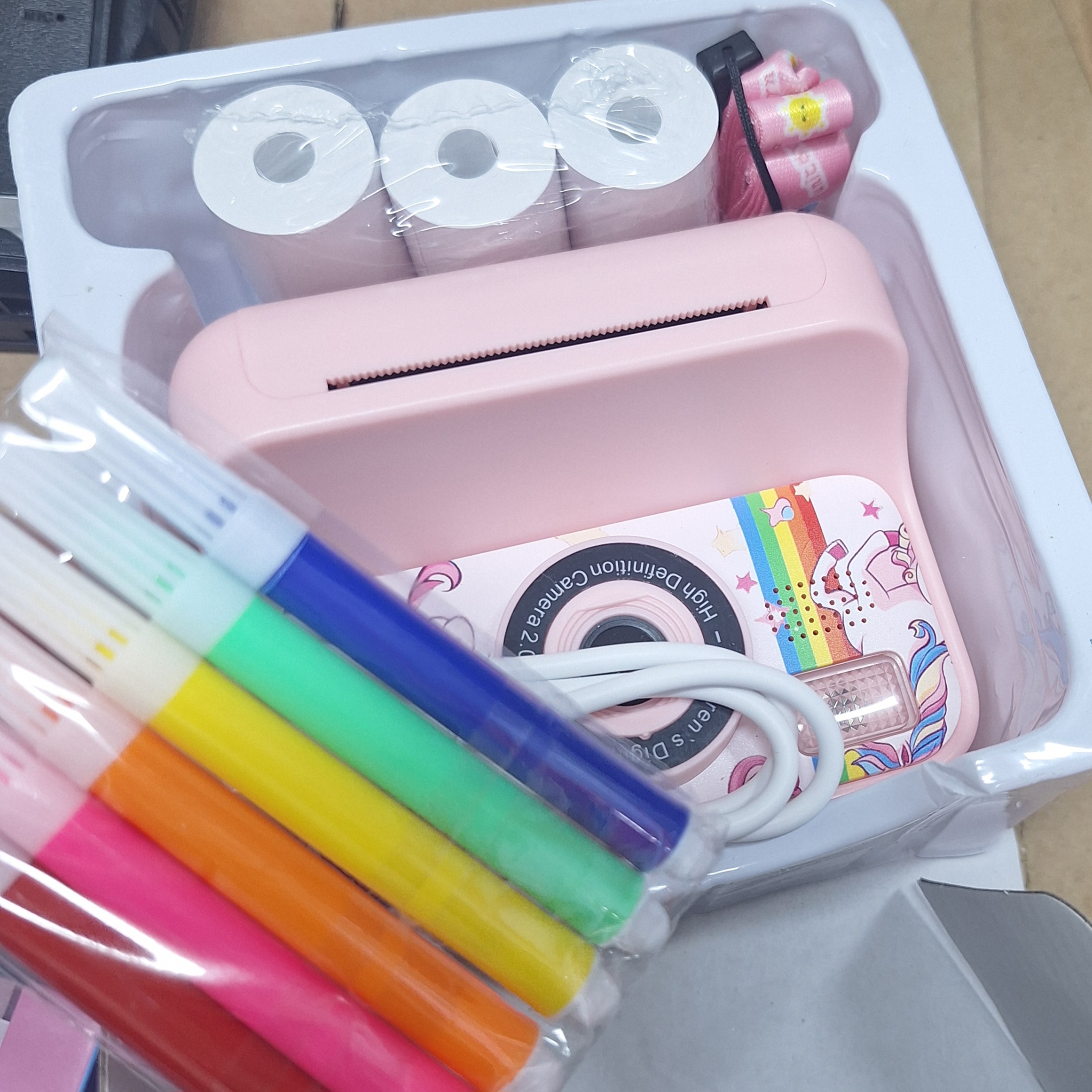 این محصول یک دوربین دیجیتال مینی مخصوص کودکان است که ویژگیهای زیر را دارد: دارای لنز دوگانه HD با کیفیت 4000W و قابلیت چاپ فوری عکسها. طراحی شده با مواد غیر سمی و سازگار با محیط زیست، با تمرکز بر ایمنی کودکان. قابلیت ضبط ویدئو، گرفتن عکس، پخش موسیقی، اجرای بازی و چاپ عکس را دارد. مجهز به صفحه نمایش HD 2 اینچی IPS برای مشاهده فوری تصاویر. بدنه دوربین از جنس سیلیکون مقاوم در برابر ضربه است.