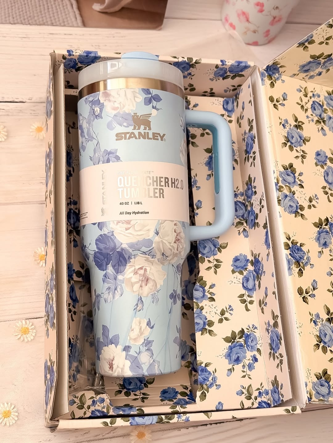 تراول ماگ استنلی گلدار اورجینال با جعبه کادویی